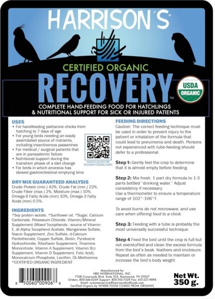 Price: (as of – Details) Harrison’s Certified Organic Recovery Hand-Feeding Formula Harrison’s Certified Organic Recovery Hand-Feeding Formula is an exceptional