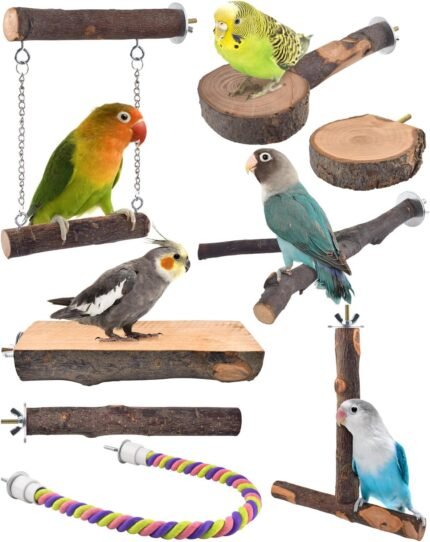 Price: (as of – Details) Parakeet Toys Set – 8 Pieces of Wooden Perches for Small and Medium-Sized Birds This