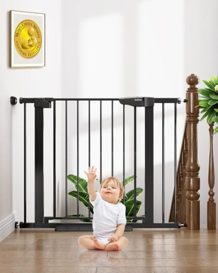 Cumbor 29.7-40.6″ Baby Gate for Stairs, Baby Essential Safety Gate, Mom’s Choice Awards Winner-Dog Gate for Doorways, Pressure Mounted Auto-Close Pet Gates for Dogs Indoor, Durable Child Gate, Black
