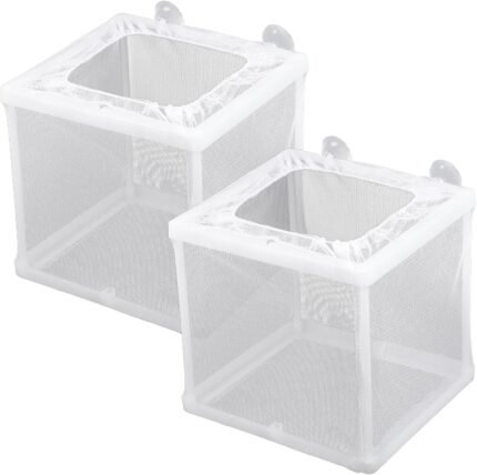 2 Pack Fish Incubator Mesh Box Aquarium, 6.3″ x 5.51″ x 5.91″ Breeder Box for Fish Tank White Nylon Mesh Fishes Breeder Boxes for Aquarium Juvenile Fishes Separation Net Fry Hatchery with Suction Cups