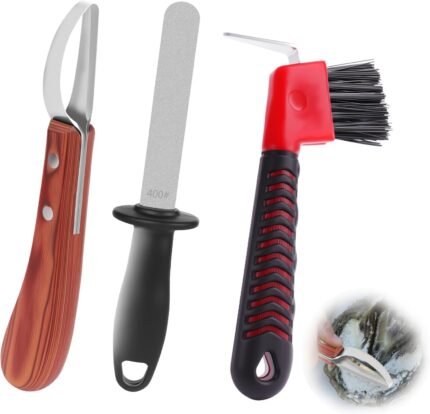 3-in-1 Farrier Hoof Knife with Built-in Sharpenerener & Horseshoe Brush–High Carbon Steel Blade,Sharpener Hoof Knife,Hoof Knife Sharpenerener for Professional Trimming, Grooming & Hoof Care