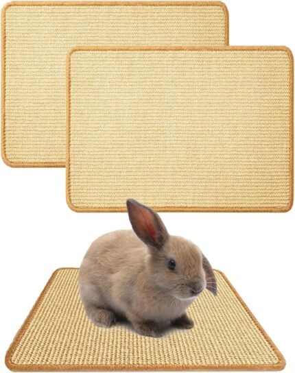 Oncpcare 2PCS Rabbit Scratch Mat Natural Bunny Scratching Pad Claws and Teeth Care Rabbit Mats for Cages Chew Toys for Bunny Pet Cage Bedding for Biting Sleeping Nesting, 16×12