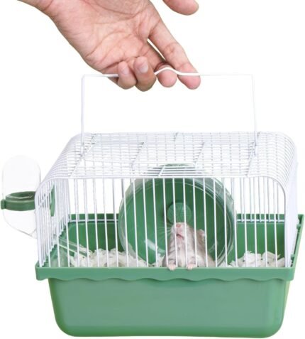 9.1×6.7×6.3 inch Small Portable Hamster Cages, Hamster Carrier, Pet Travel Carrier, Small Animal Pet Cages, with Water Bottle, Food Bowl, Wheel, Green