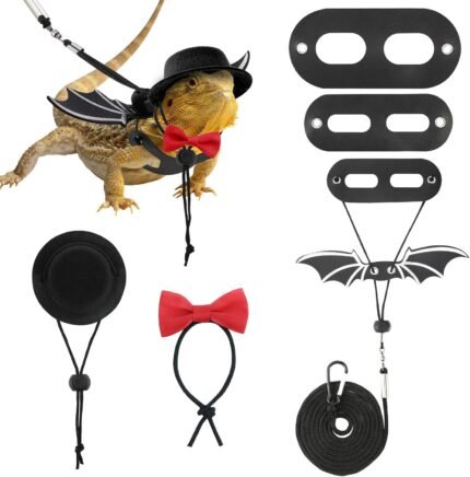 Bearded Dragon Lizard Leash Harness (S/M/L 3 Pack), Adjustable Leash Bat Wings Costume Accessories with Hat & Bow Tie Collar for Lizard Reptile, Gecko, Iguanas, Amphibians & Small Animals