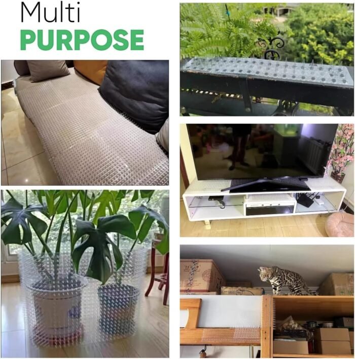 The Cat Scat Mat features sharp spikes that deter pets from approaching the area, but are safe and won’t cause harm. The mat is 13X16 inches in size and can be cut to fit specific areas, such as furniture, gardens, or trees.