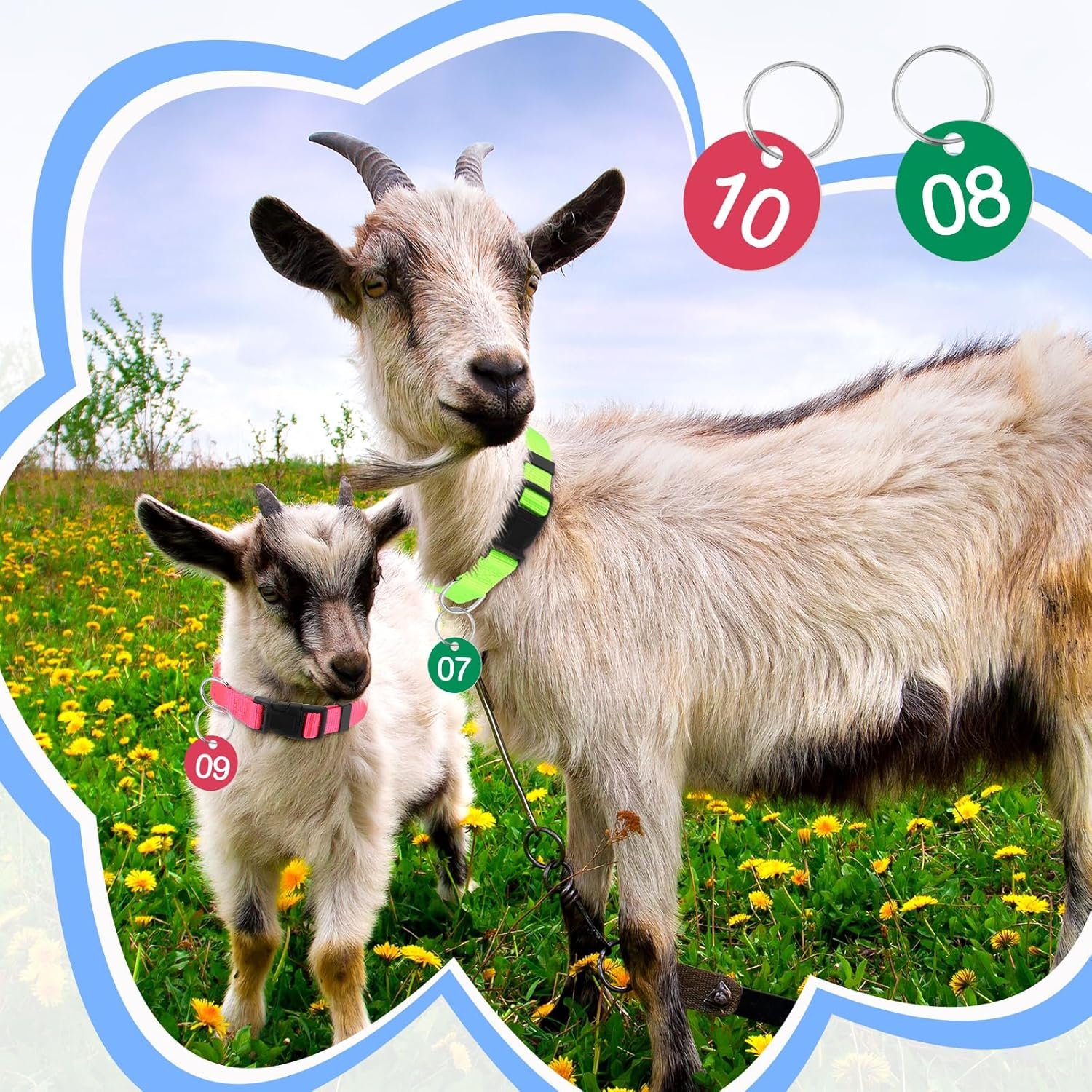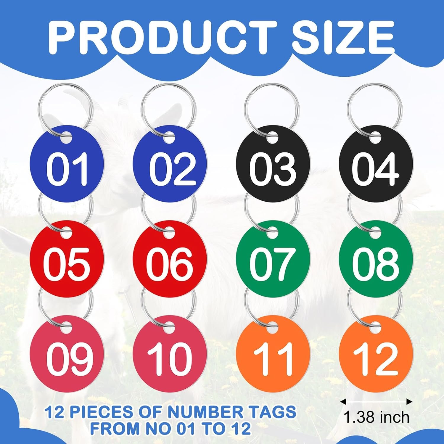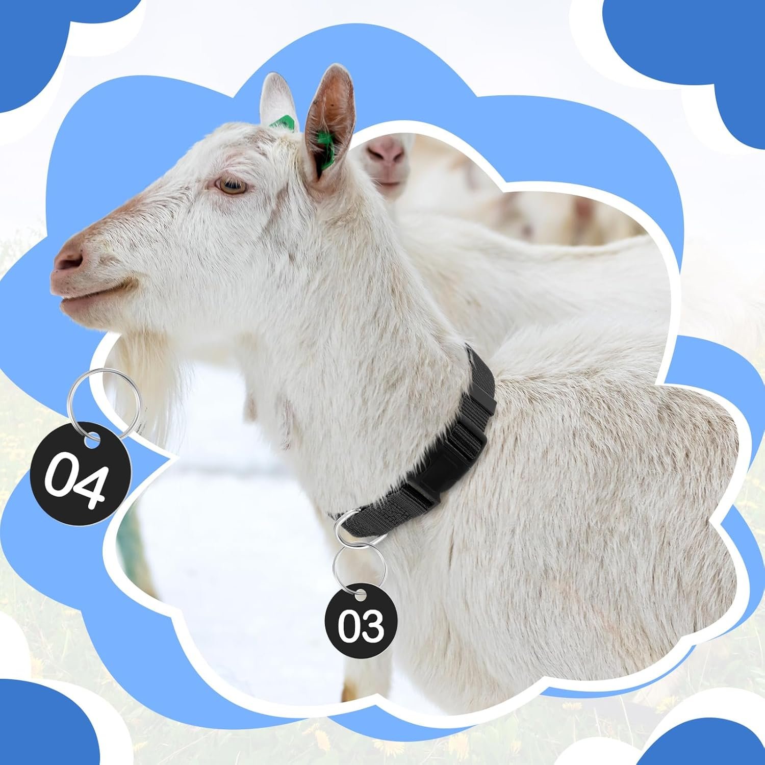 The package includes 12 goat collars, along with 12 pieces of number tags from NO 01 to 12. This collection offers maximum convenience in distinguishing your pets, whether on a sprawling farm or a cozy home. With this set, you save time and avoid the confusion of animal identification.