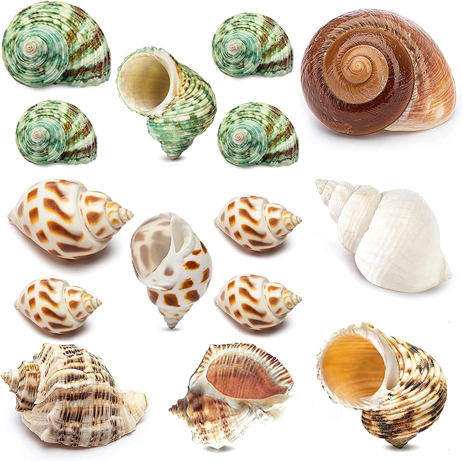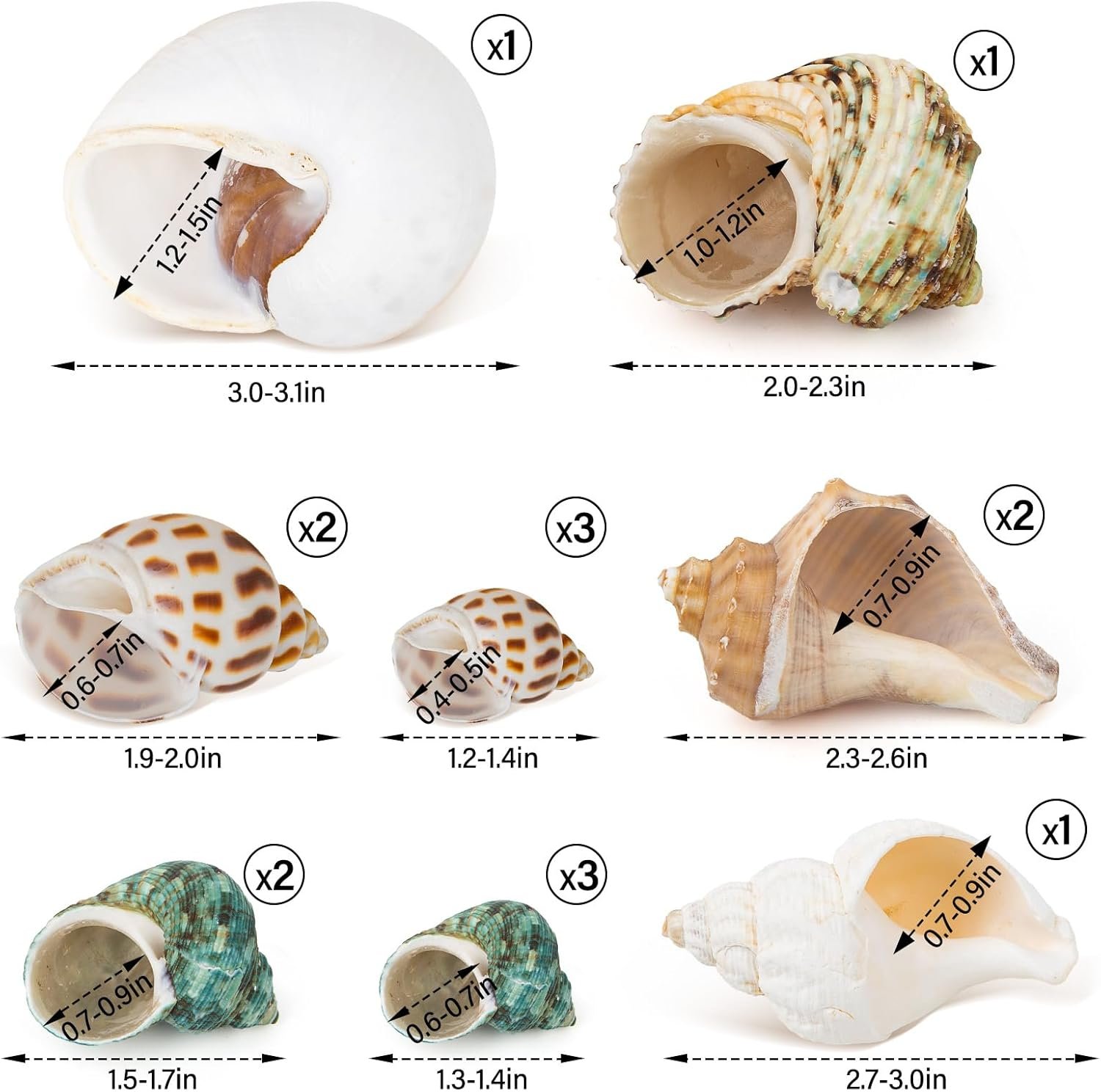 15PCS Hermit Crab Shells Include Small & Medium and Large (6 Types) Natural Seashells, for Hermit Crab Supplies and Replacement Sea Shells