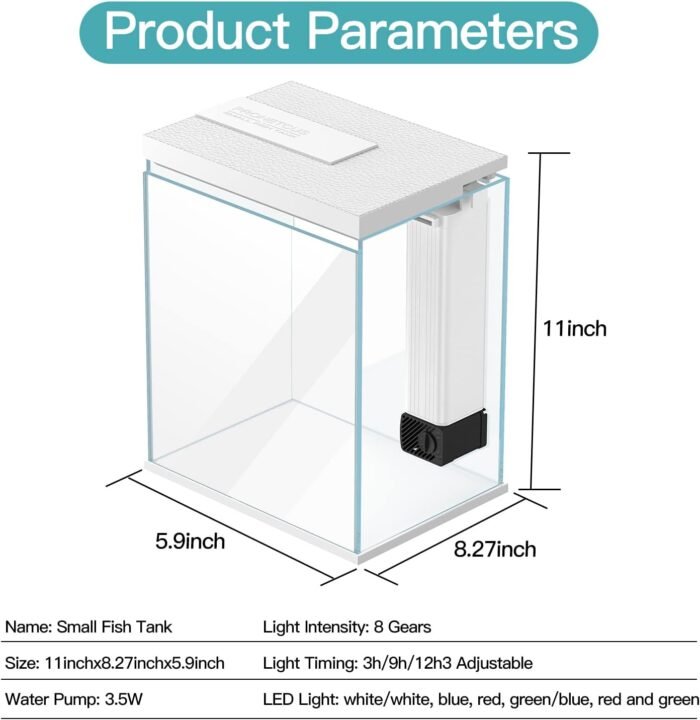 - Easy to clean: The small fish tank is equipped with an adjustable pump and built-in filter sponge to improve water quality, making maintenance and cleaning a breeze.