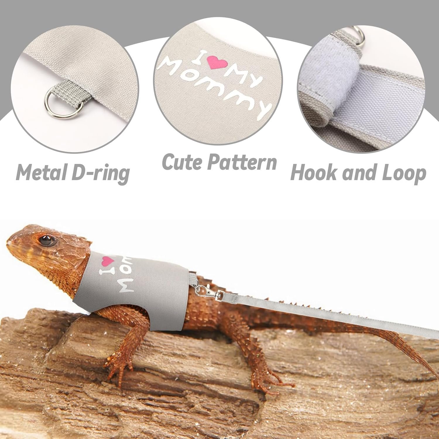 The bearded dragon harness and leash set has several features that make it an excellent choice for pet owners. The neck and chest of the harness are designed with hook and loop, allowing for flexible adjustment according to the actual size of the lizard. The hook and loop design makes the harness easy to wear and take off, ensuring a good wearing experience.