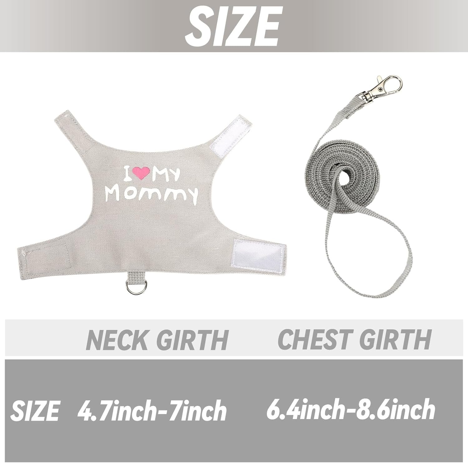 • Cute design: The words “kiss me” and “I love mom” are printed on the back of the harness, making the pet look different and increasing the interactive fun between the pet and the owner.