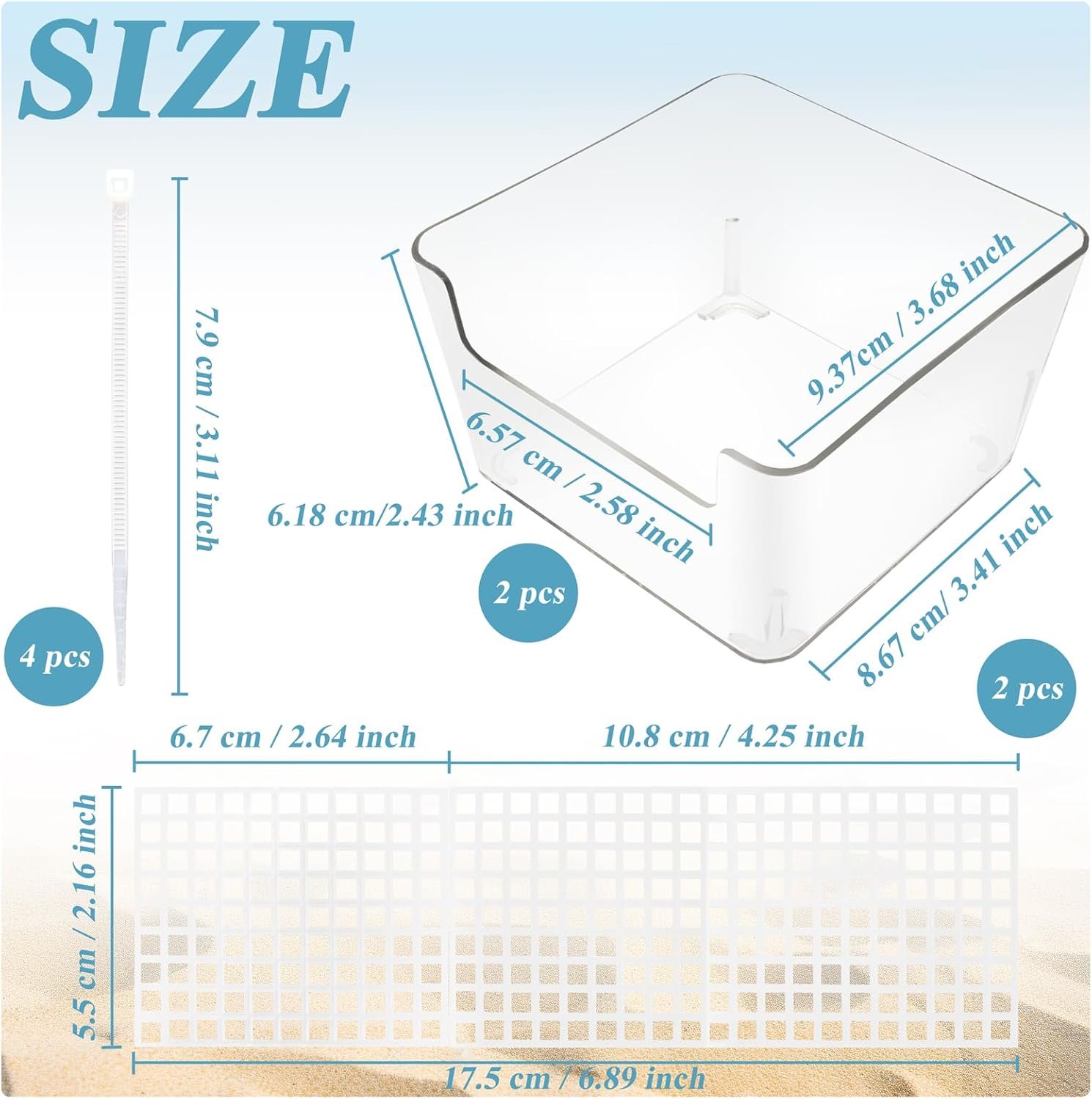 The package includes 2 clear hermit crab huts, 2 climbing ramps, and 4 zip ties. After simple assembly, it is a great hermit crab habitat tank that can be decorated according to your own preferences to make your pet’s life more comfortable.