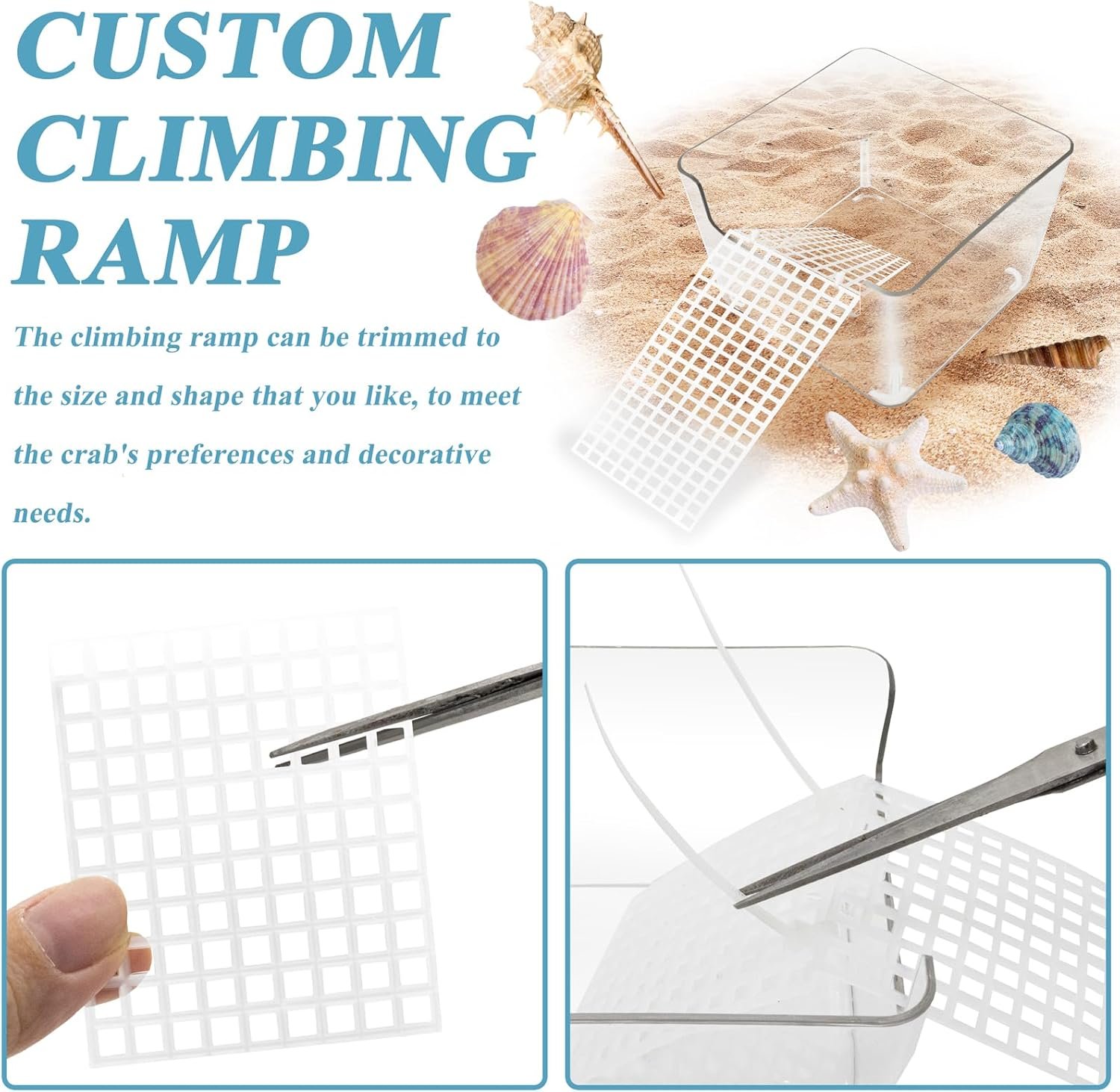The tank features a climbing ramp that can be trimmed to size and shape, allowing you to customize it to your pet’s preferences and decorative needs. The tank is also easy to clean, with rounded corners and no gaps or dead ends. The hermit crab tank measures approximately 3.74 x 3.74 x 2.56 inches (9.5 x 9.5 x 6.5 cm), making it an ideal habitat for small to medium-sized hermit crabs or other small crabs.