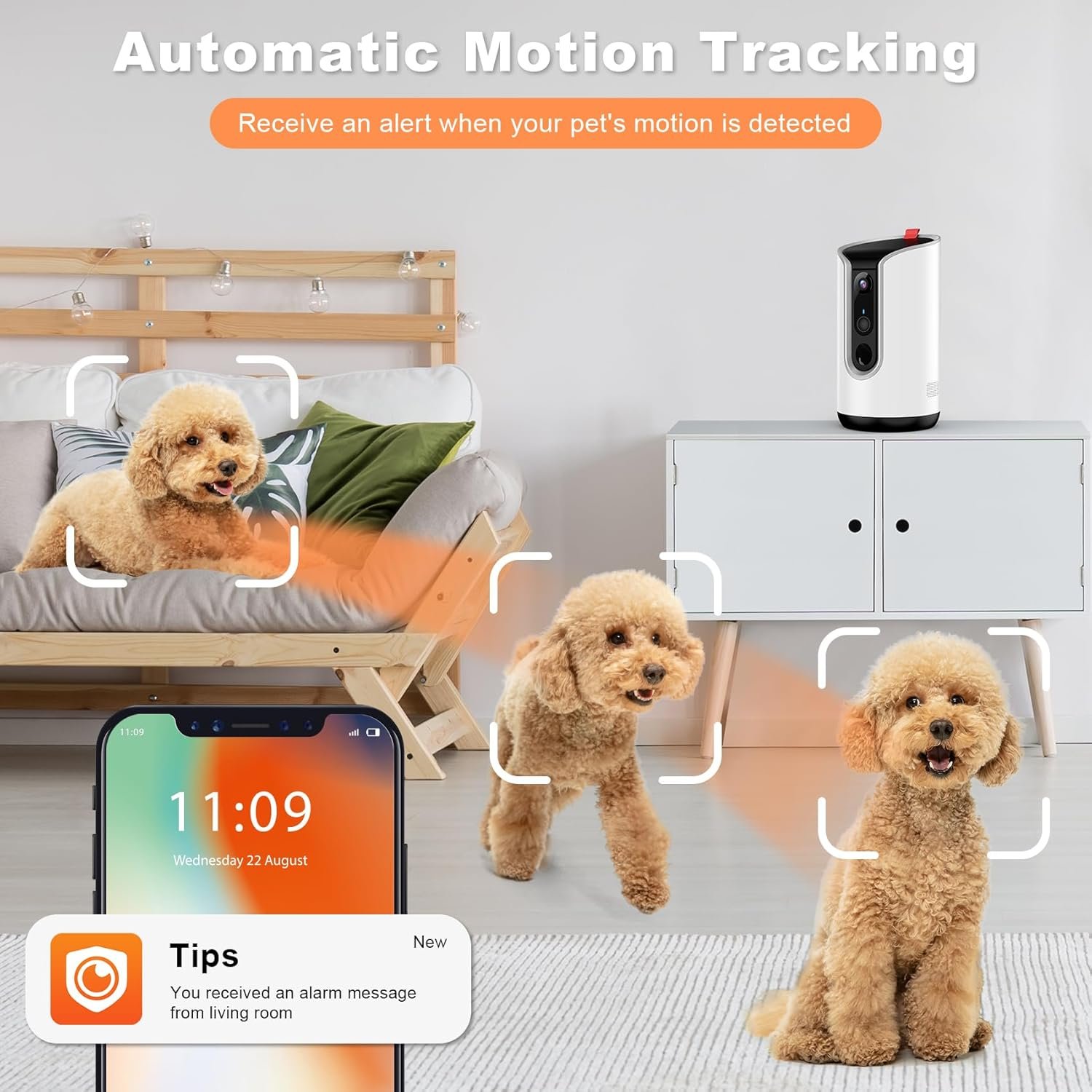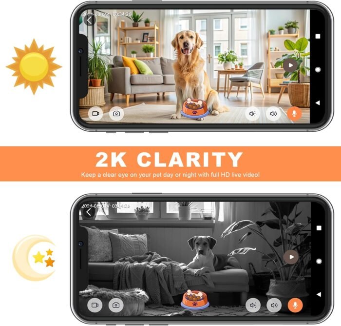 - 360° rotating view with 2K HD resolution, allowing you to capture every moment of your pet’s life without blind spots.