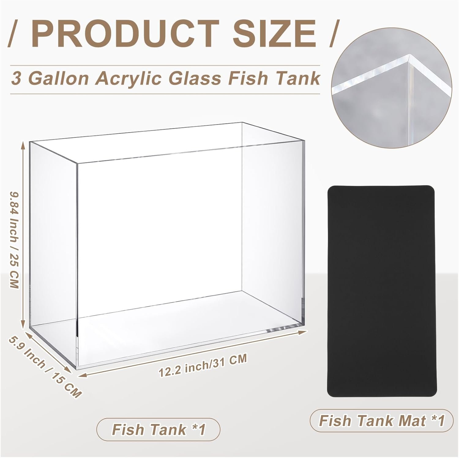 • Package includes: 1 x Acrylic fish tank, 1 x Black fish tank mat