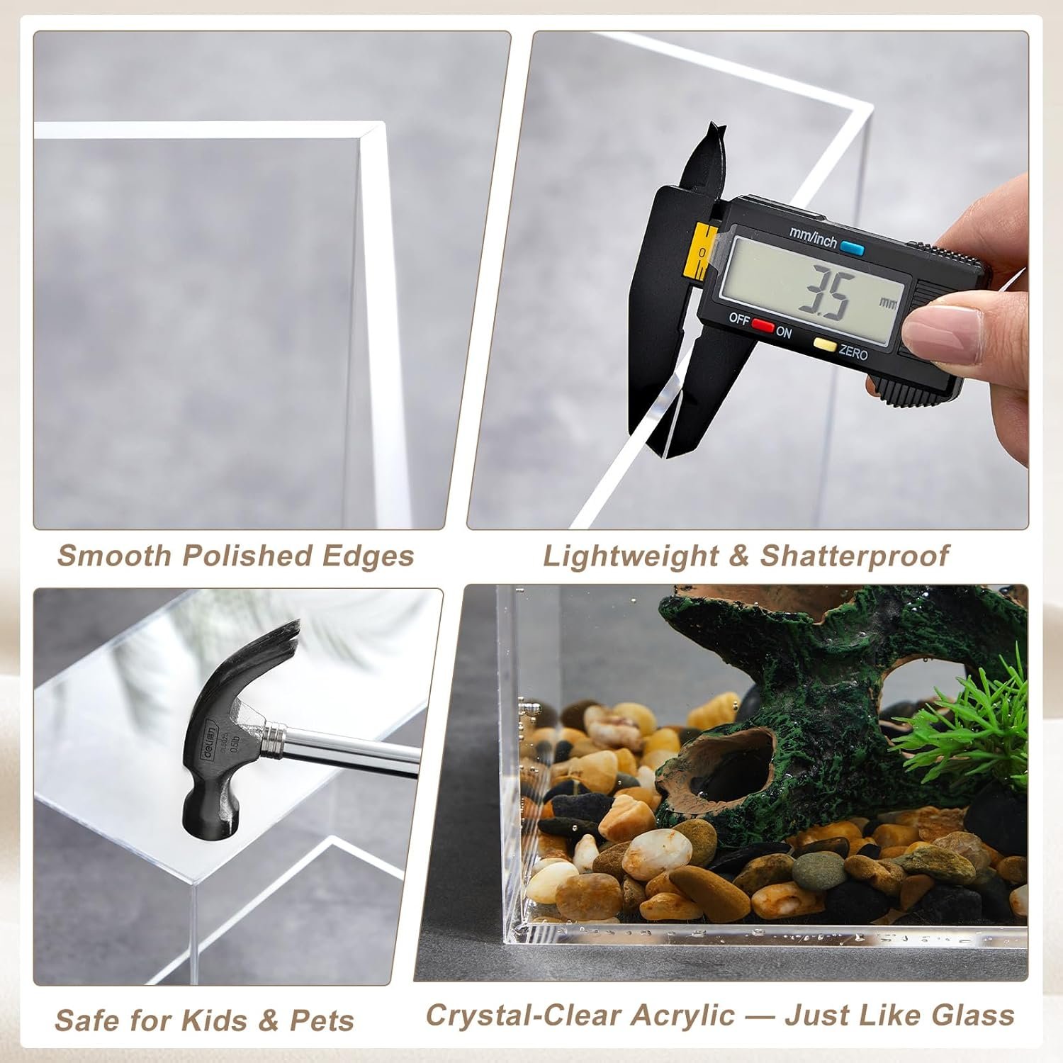 • Made from clear, high-quality acrylic material that is shatter-resistant and lightweight