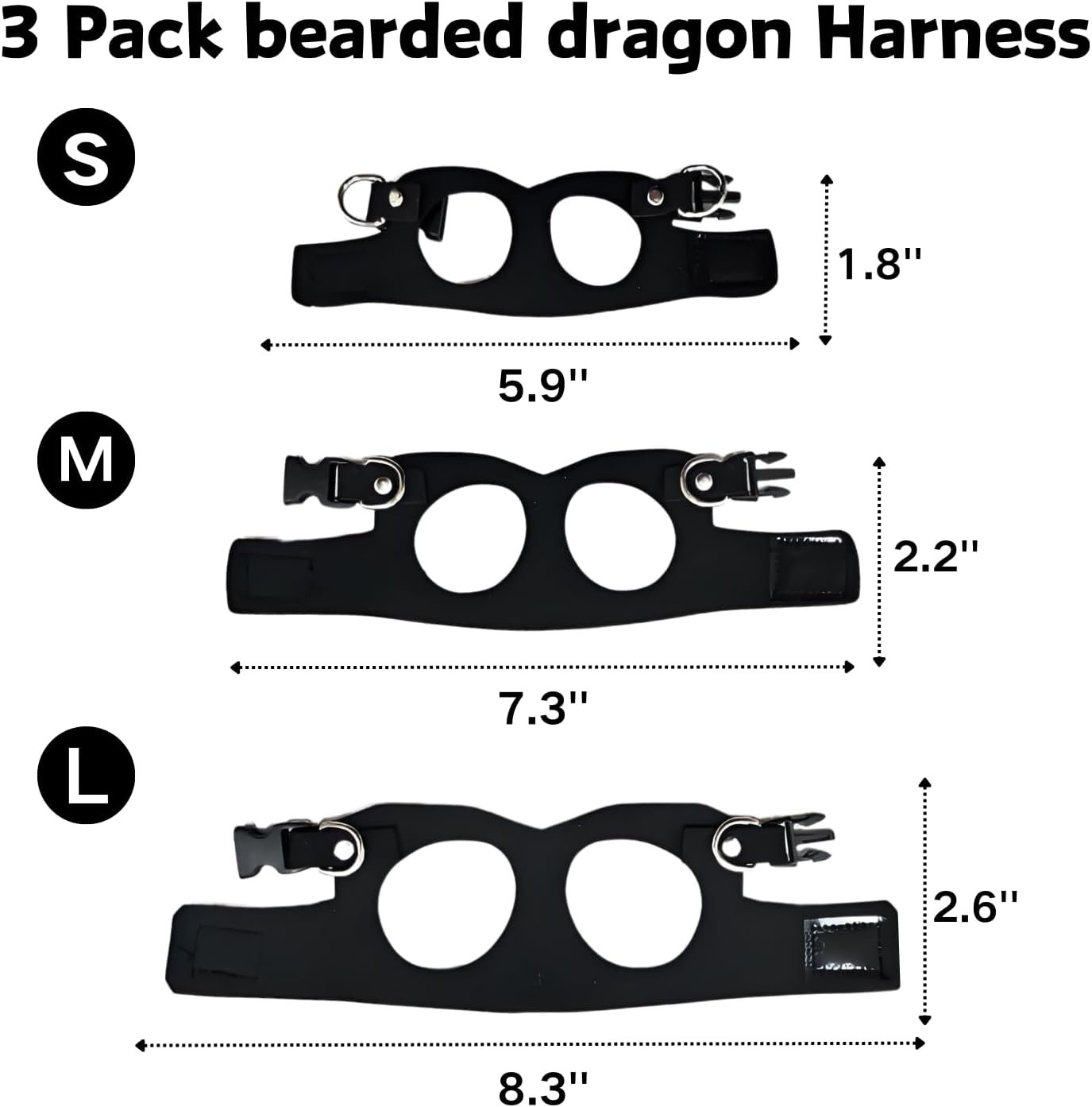 The Bearded Dragon Harness Leash is a high-quality, adjustable harness designed for bearded dragons and other small animals. It comes in a 3-size pack, including small, medium, and large, making it suitable for pets of different sizes and growth stages.