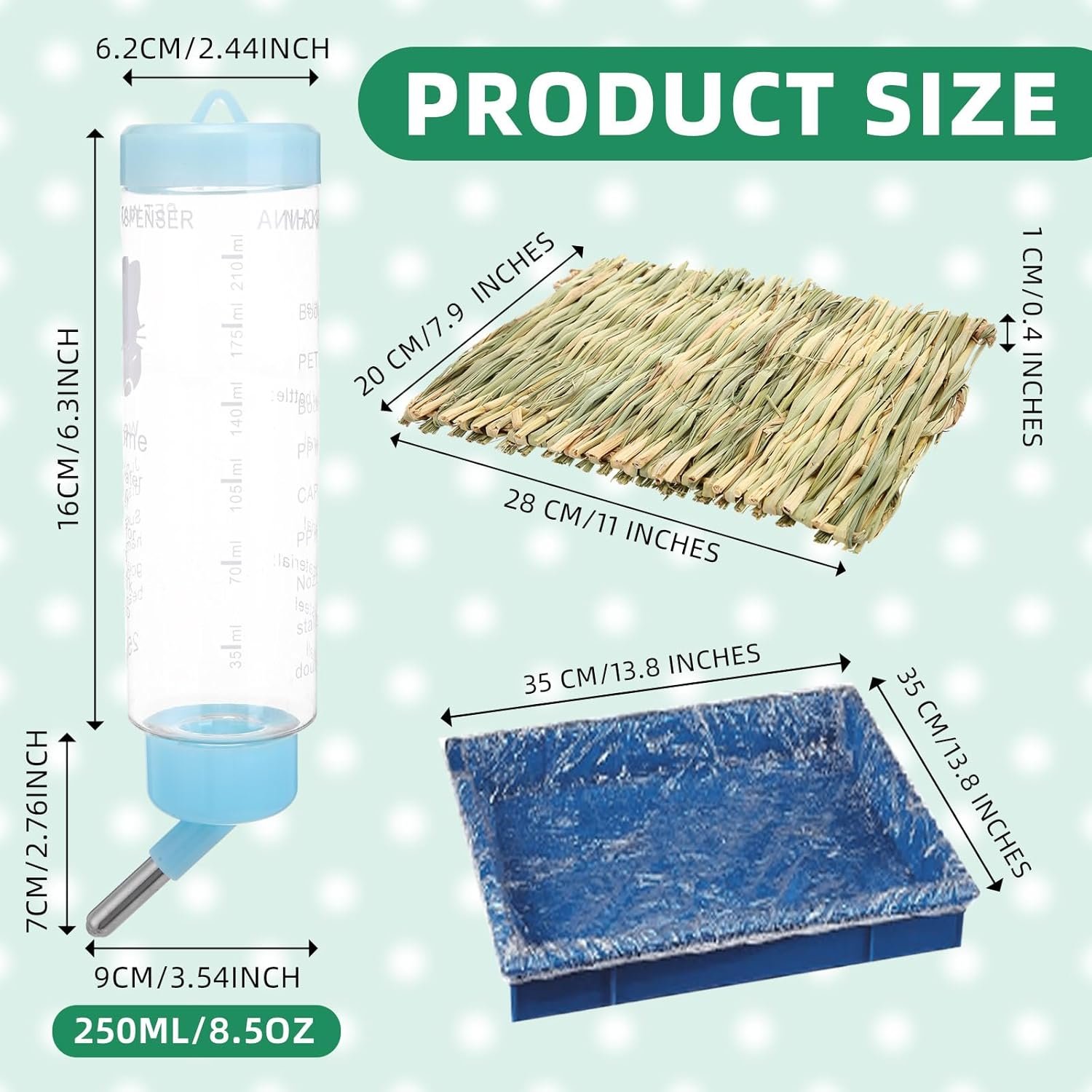 - Rabbit litter box: About 29 x 24 x 16 cm / 11.4 x 9.5 x 6.3 inches