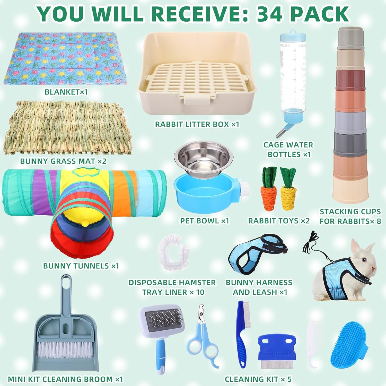 The Comprehensive Pet Care Kit is a robust starter kit, ideal for new pet owners, providing a comprehensive solution for all your pet’s needs. This set simplifies pet care, making it perfect for various animals, including rabbits, guinea pigs, hedgehogs, and ferrets. It preserves a clean environment for your pet, ensuring their safety and well-being.
