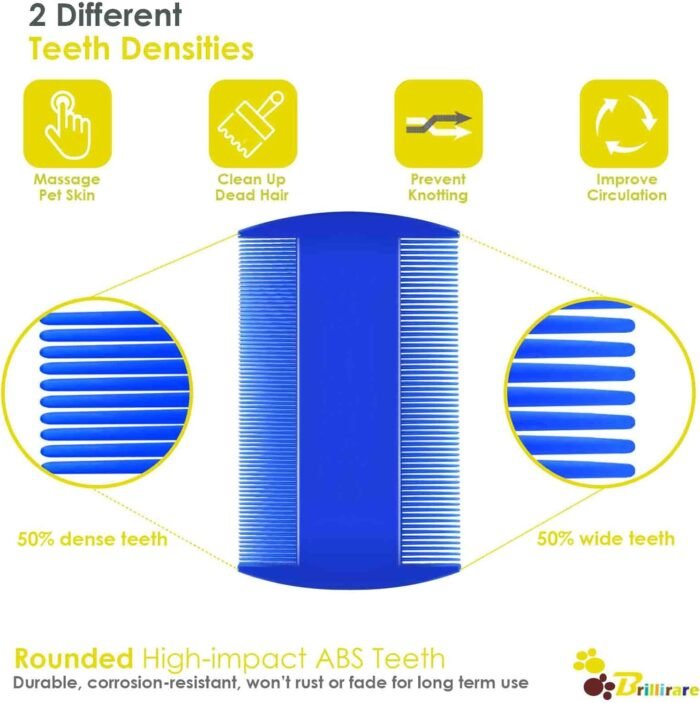 Our pet grooming comb set includes 4 combs, 1 tooth comb, 1 double sides lice comb, 1 long-needle & 1 short-needle comb. The combs have high-quality stainless steel teeth tightly embedded in the ergonomic ABS grip. Every comb tooth is finely polished, won’t scratch pets’ skin, easily removing lice, flea, mess, mucus, stain etc.