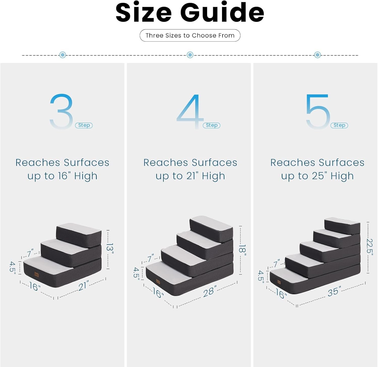 - Provides a comfortable and safe way for pets to access high furniture