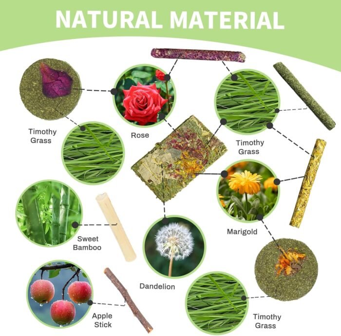 Our bunny treats set contains a diverse range of natural products, including: