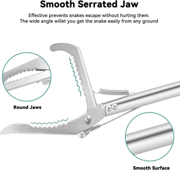 The collapsible snake pole design makes it easy to transport and store, while the wide thick jaws ensure accurate catching without hurting the snakes. The tool is made from heavy-duty stainless steel with a rubber non-slip grip, providing maximum holding pressure with minimal risk of damage to reptiles. Whether you’re a professional snake handler or a pet reptile owner, this tool is essential for safe and effective reptile control.
