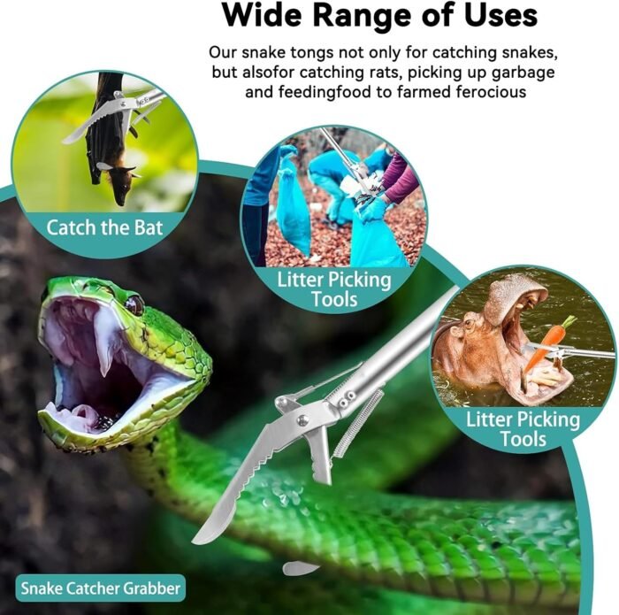 Be the first to review “60“ Professional Collapsible Snake Grabber Tool, Stainless Steel Snake Catcher Pole with Heavy-Duty Grabber Heads, Tongs, and Hook Mechanisms for Safe Reptile Control in Gardens or Farms” Cancel reply