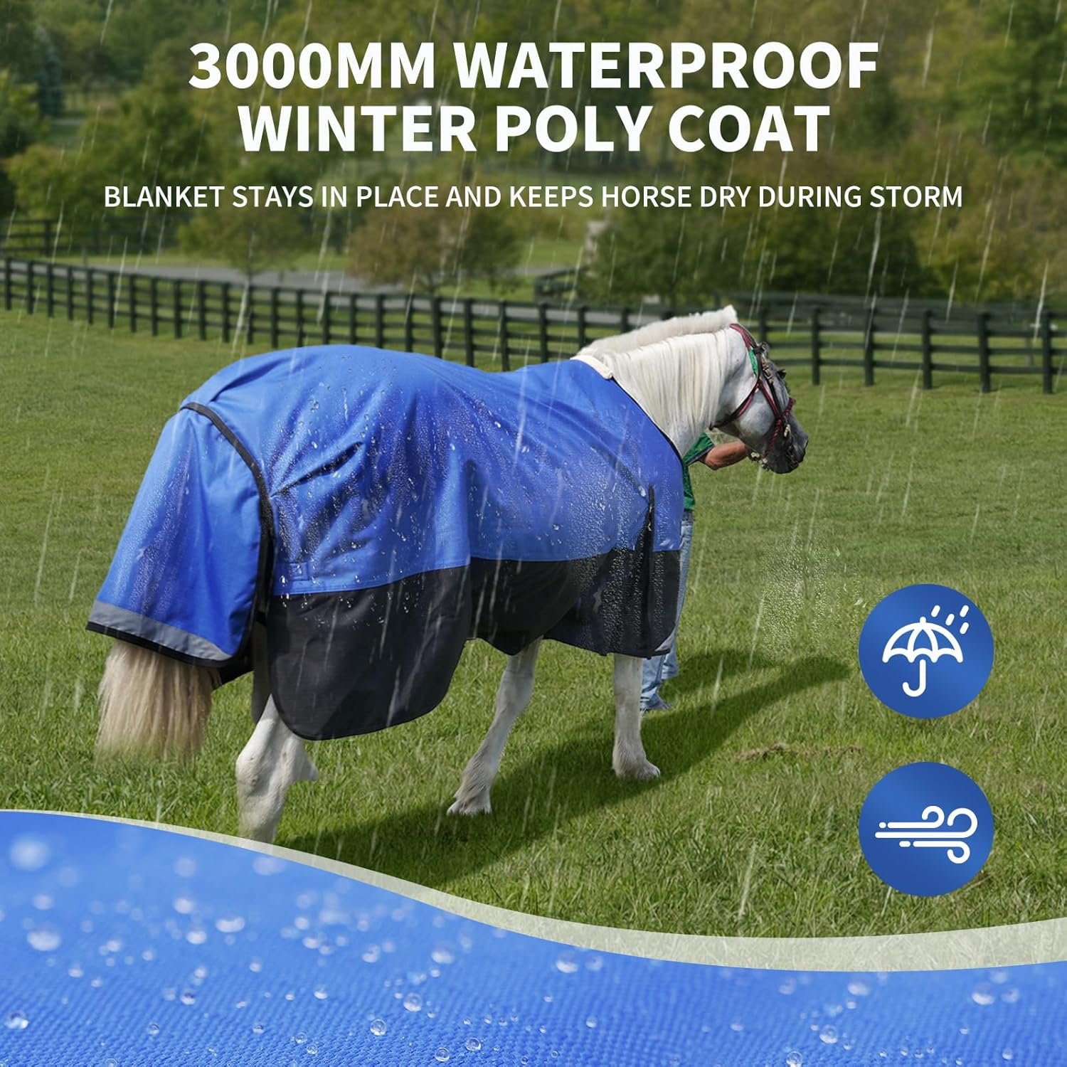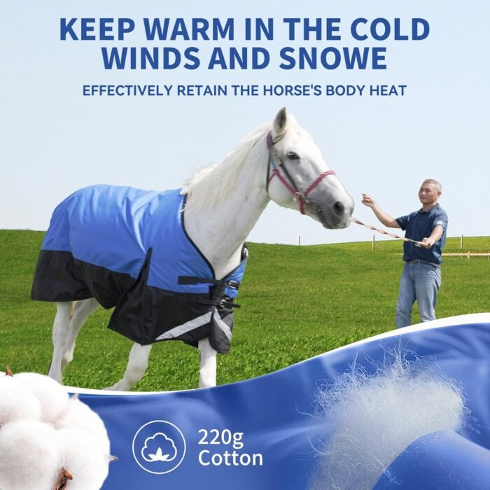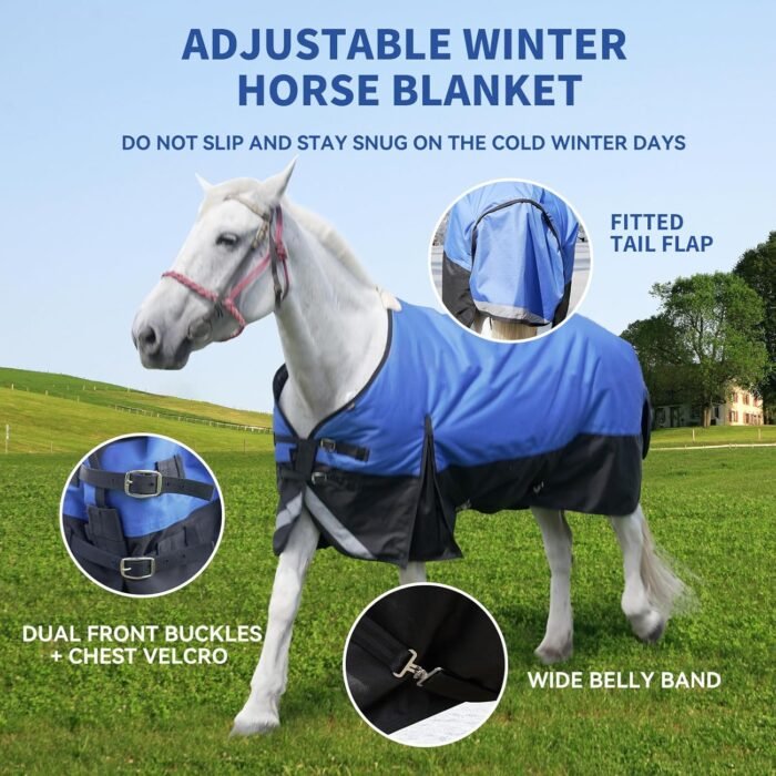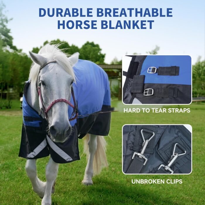Our horse blanket is designed to keep your equine companion warm, dry, and comfortable in various weather conditions. The smooth construction allows your horse to move freely, while the sealed front layout traps warmth efficiently, making it ideal for shielding against gusts. With its breathable design and moisture-wicking properties, this blanket prevents odors and helps regulate your horse’s temperature, ensuring health and well-being.