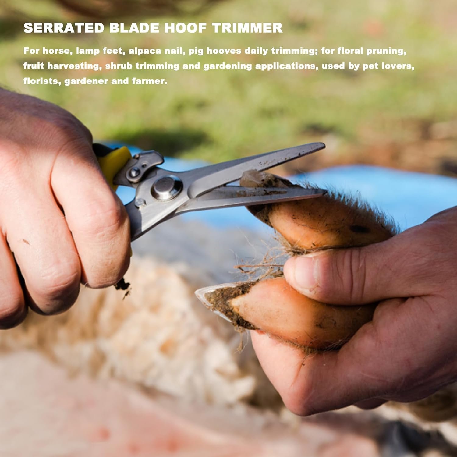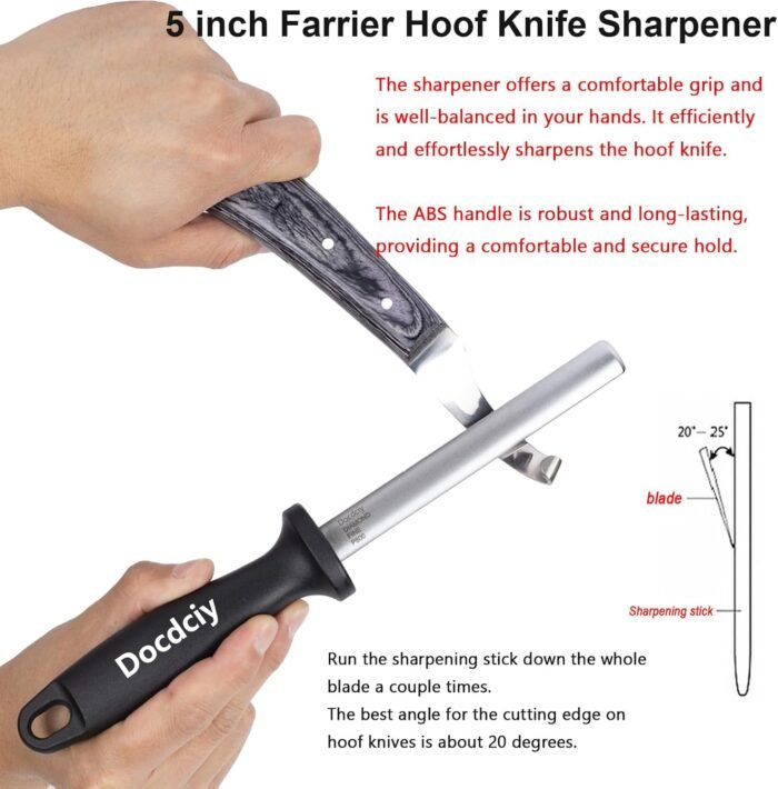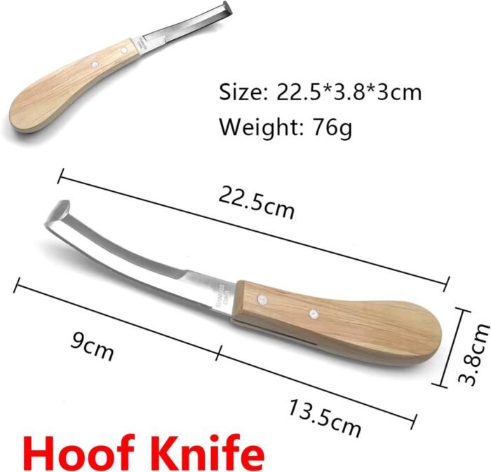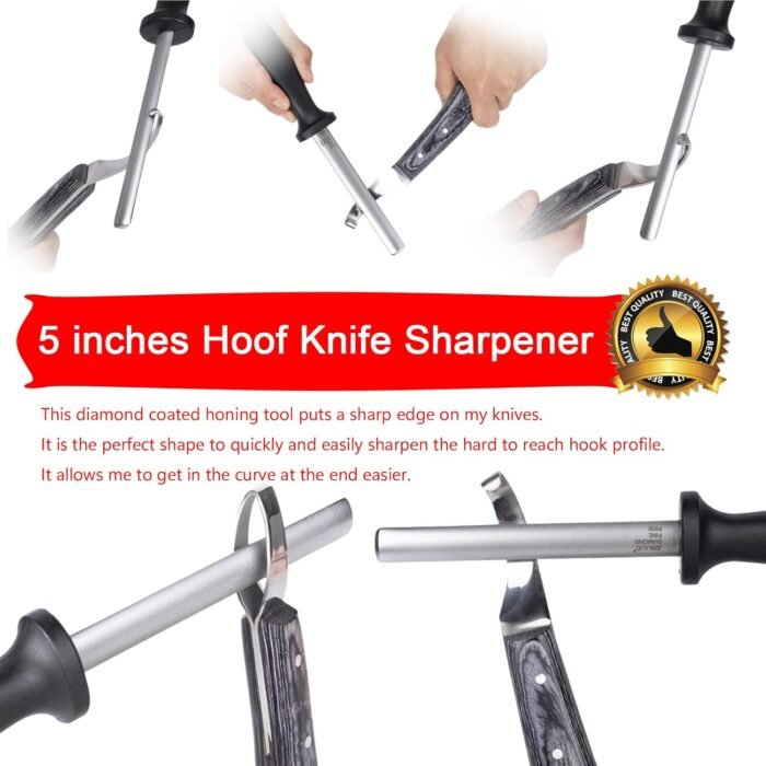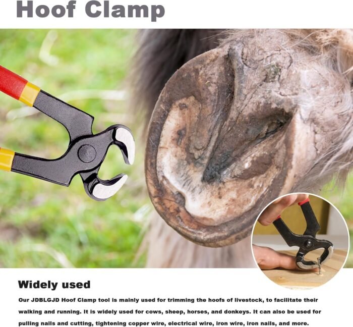 • Versatile tool kit including an 8-inch hoof trimmer, sharpener, hoof rasp, and professional trimming clippers.