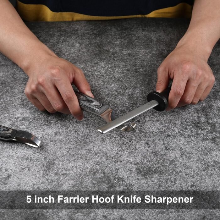 • Complete set includes hoof knife, hoof nippers, hoof rasp, hoof pick, hoof knife sharpener, gloves, and a tool bag