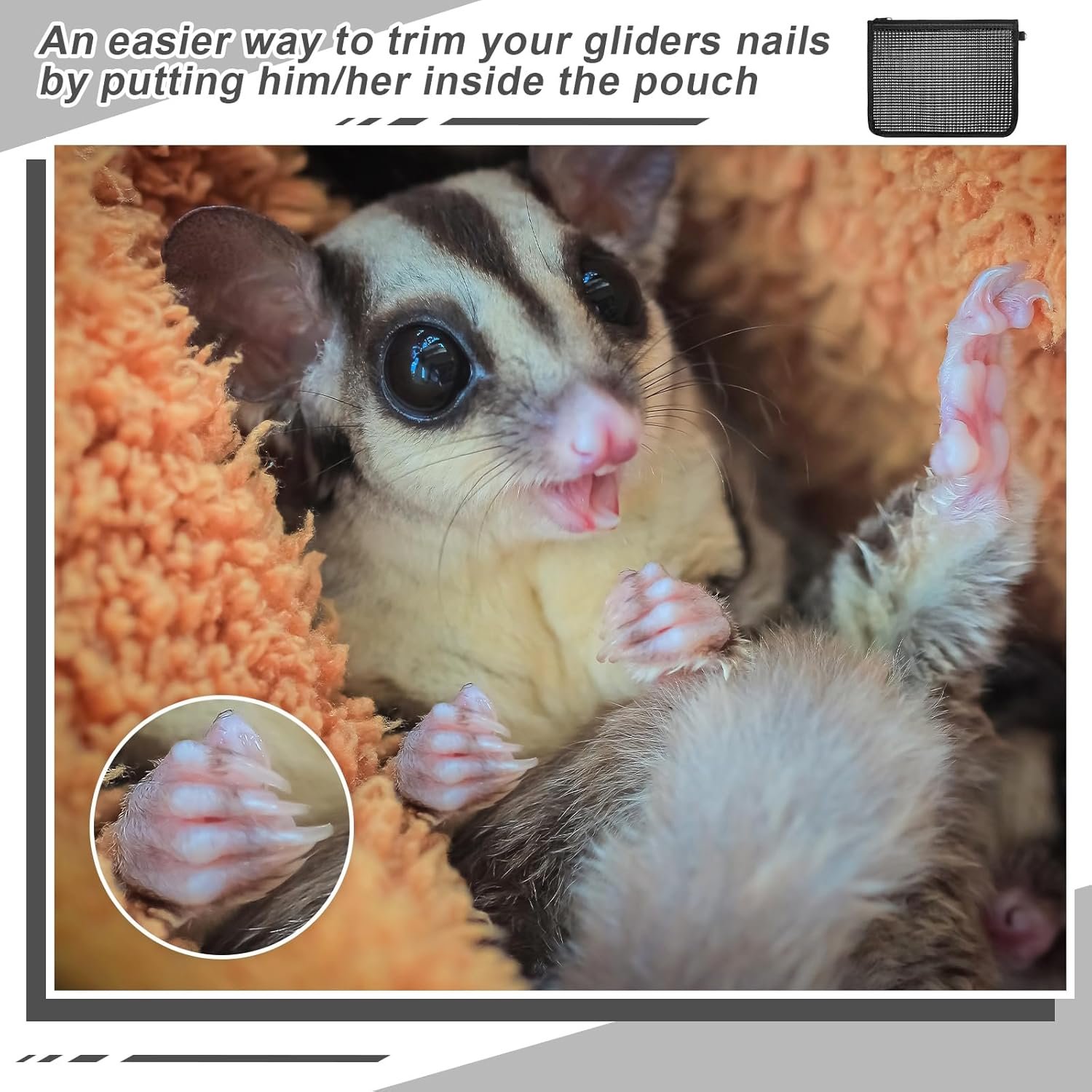 - Package Includes: 2 x Sugar glider nail trimmer pouch