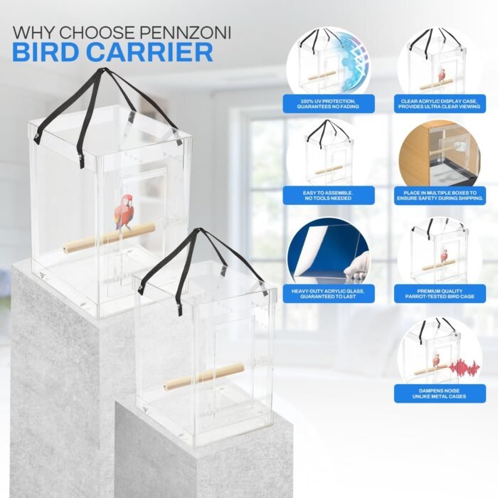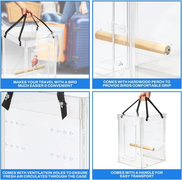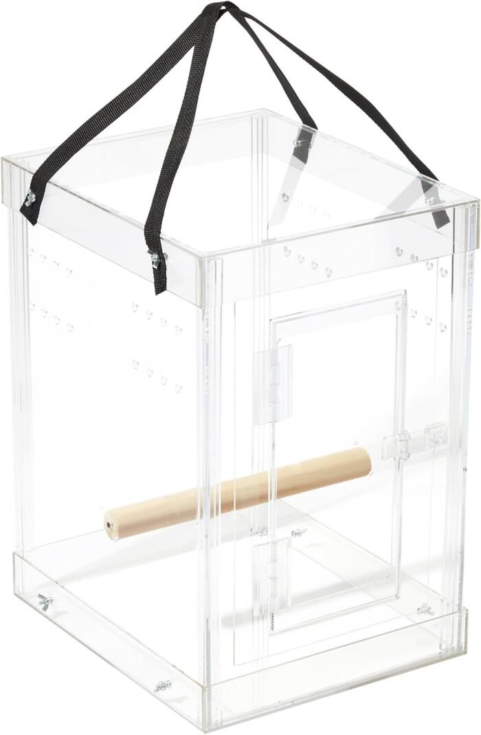 Our bird-tested acrylic carrier is designed to provide a safe and comfortable environment for your bird. The clear acrylic allows for a great view of your bird and surroundings, while the ventilation holes provide fresh air and help regulate temperature. The hardwood perch provides a comfortable place for your bird to perch, and the handle makes it easy to transport the cage. The cage is also easy to clean and assemble without tools, making it a great option for bird owners.