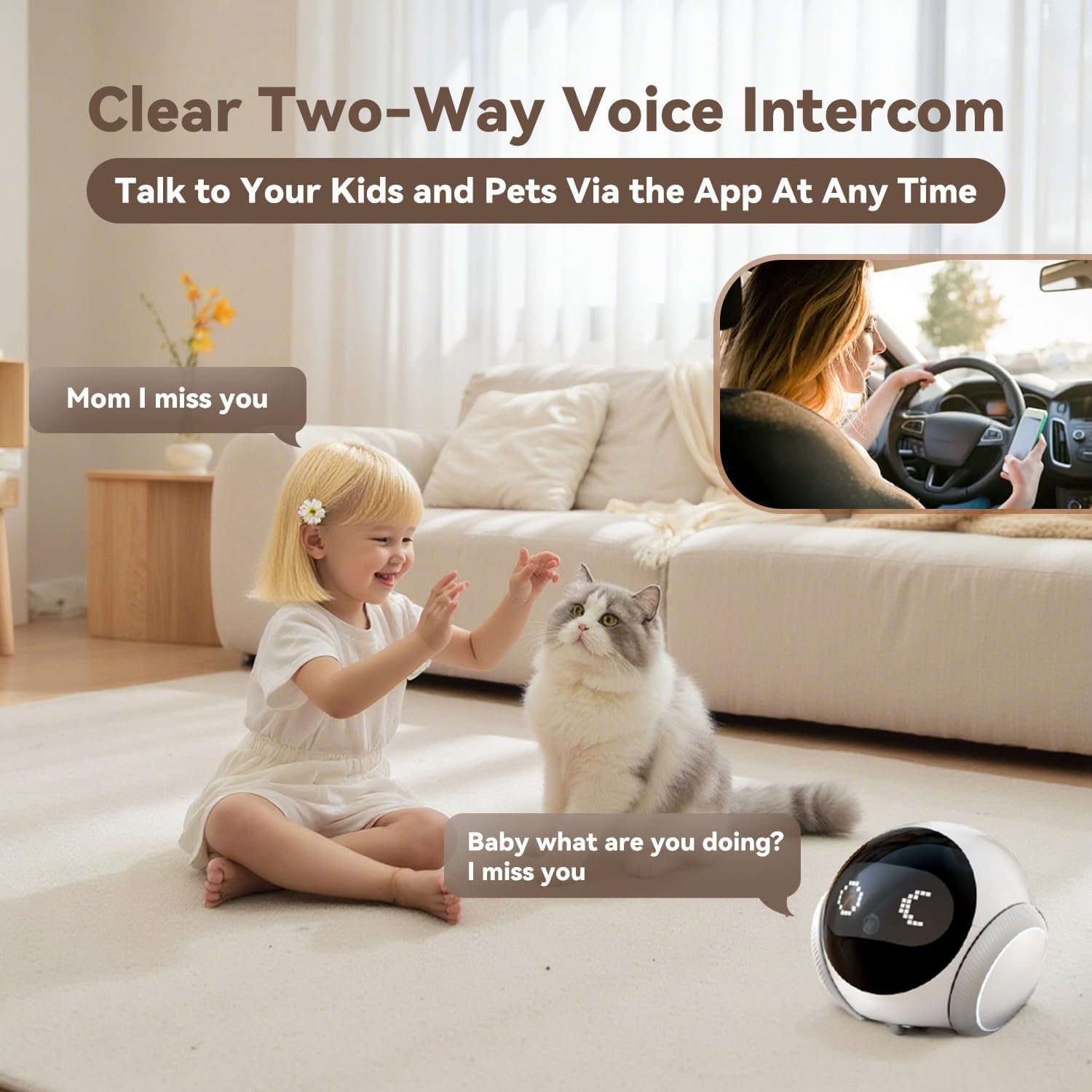 • Multiple Motion Modes & Pet Interaction: The pet camera features 8 built-in motion patterns to engage pets, plus a red laser mode for playing with cats. It also includes 12 adorable expression modes that trigger unique reactions.