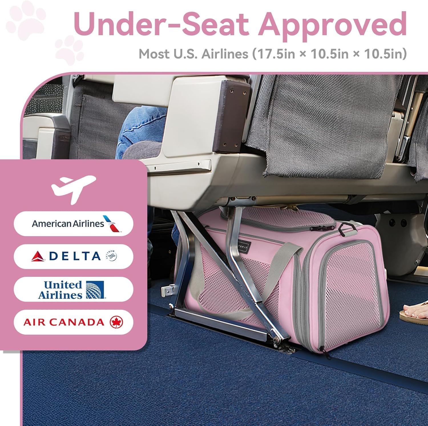 This pet carrier is designed to provide a safe and comfortable travel experience for your pet. With its airline-approved design, it can fit under the seats of most U.S. airlines, making it perfect for in-cabin trips.