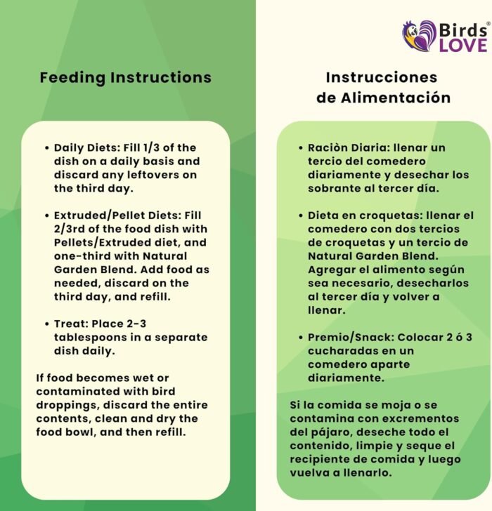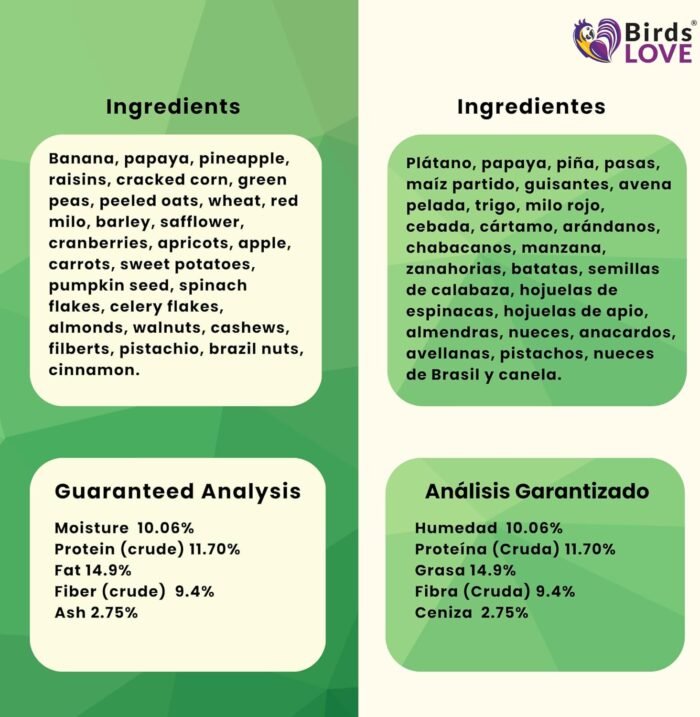 - No added preservatives or sweeteners, with natural sweet fruits to maintain healthy skin, muscles, and feathers