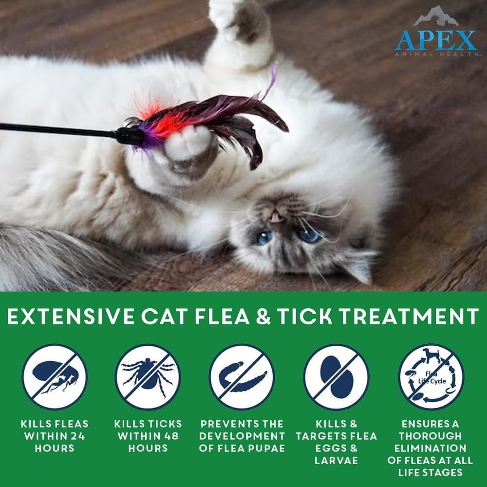 Apex Plus Cat Flea and Tick Treatment | 6-Month Supply, Over 1.5 lbs | Flea Treatment for Cats & Kittens | 24-Hour Activation, Waterproof, 30-Day Protection