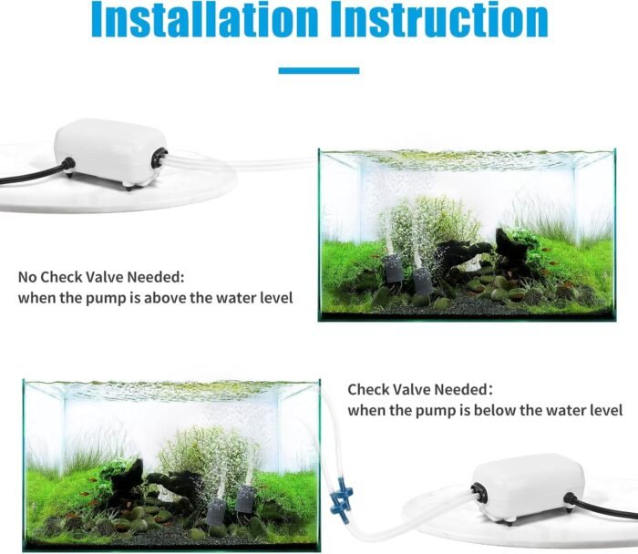 - The fish tank air pump keeps your aquarium well aerated, making your fish more active and adorable when they play in the bubbles.