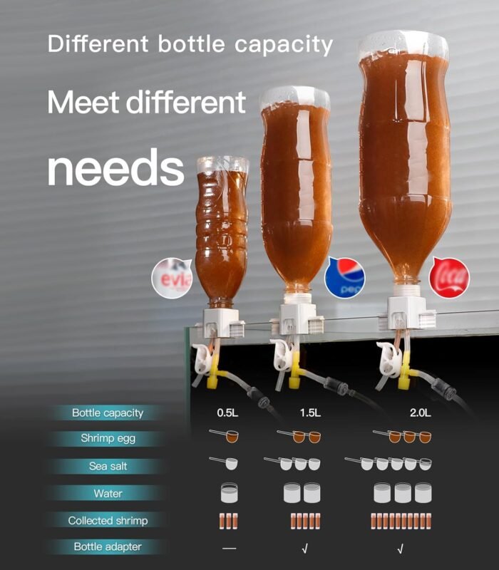 - Requires preparation of shrimp eggs, sea salt, a 1.5L mineral water bottle, and an air pump