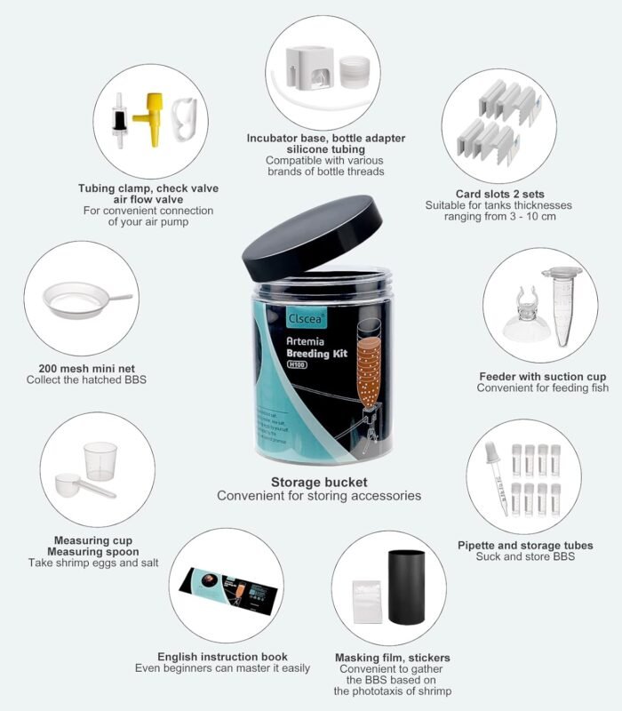 The Clscea Brine Shrimp Incubator Kit is designed to make it easy for you to hatch brine shrimp, one of the best foods available for fish fry, reef tanks, and small aquatic organisms. This kit is a simple and efficient way to provide a nutritious food source for your aquatic pets.