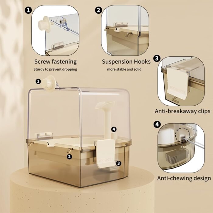 - Effortless Setup & Versatile Mounting: Assembles in under 1 minute with step-by-step instructions, and can be placed on any flat surface or hung securely on your birdcage using the durable metal nut.