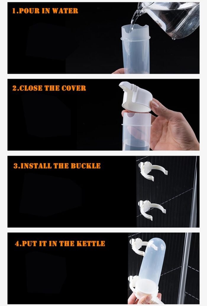 - Versatile Use: It can be used as both a water bottle and a feeder, with two openings for different uses – the large opening for material outlet and the small opening for water outlet.