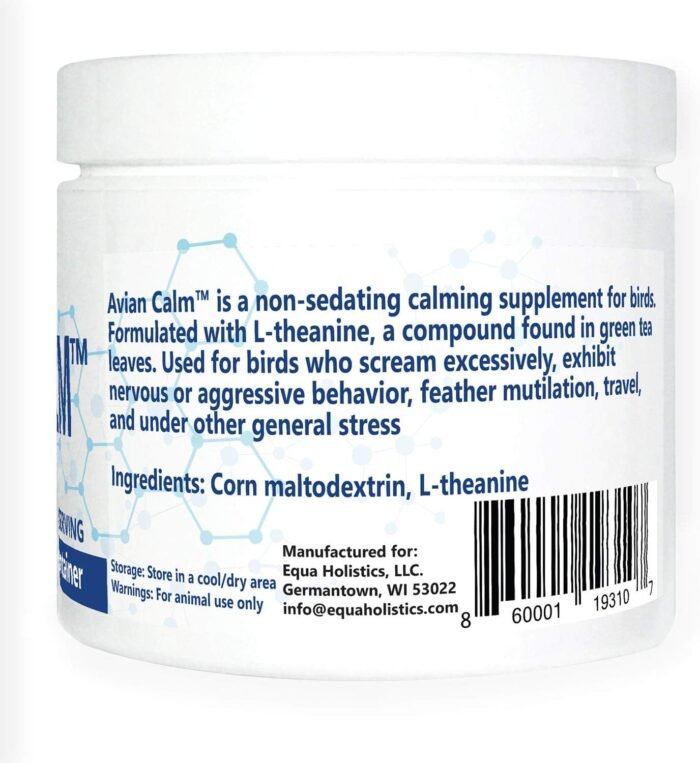 Avian Calm is a non-sedating parrot calming supplement designed to help birds who scream excessively, exhibit nervous or aggressive behavior, feather pick, have anxiety or stress, and show other unwanted behaviors. This supplement is also great for travel.