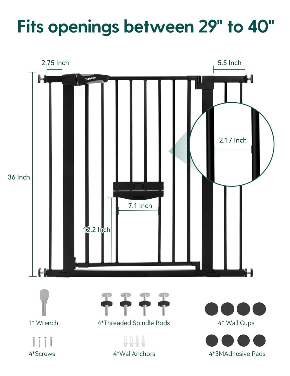 Be the first to review “BABELIO 36 Inch Extra Tall Baby Gate with Cat Door,29.5-40″ Metal Pet Door for Stairs,Doorways,House,Auto Close,Easy Walk Thru,Black” Cancel reply