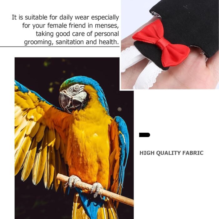 This bird diaper features a bowknot design, simple and elegant, making it more beautiful to wear. It is made with exquisite sewing and fine workmanship, providing the best care for your bird. The diaper is suitable for parakeet, cockatiels, pigeons, and other similar size birds, preventing them from peeing everywhere.