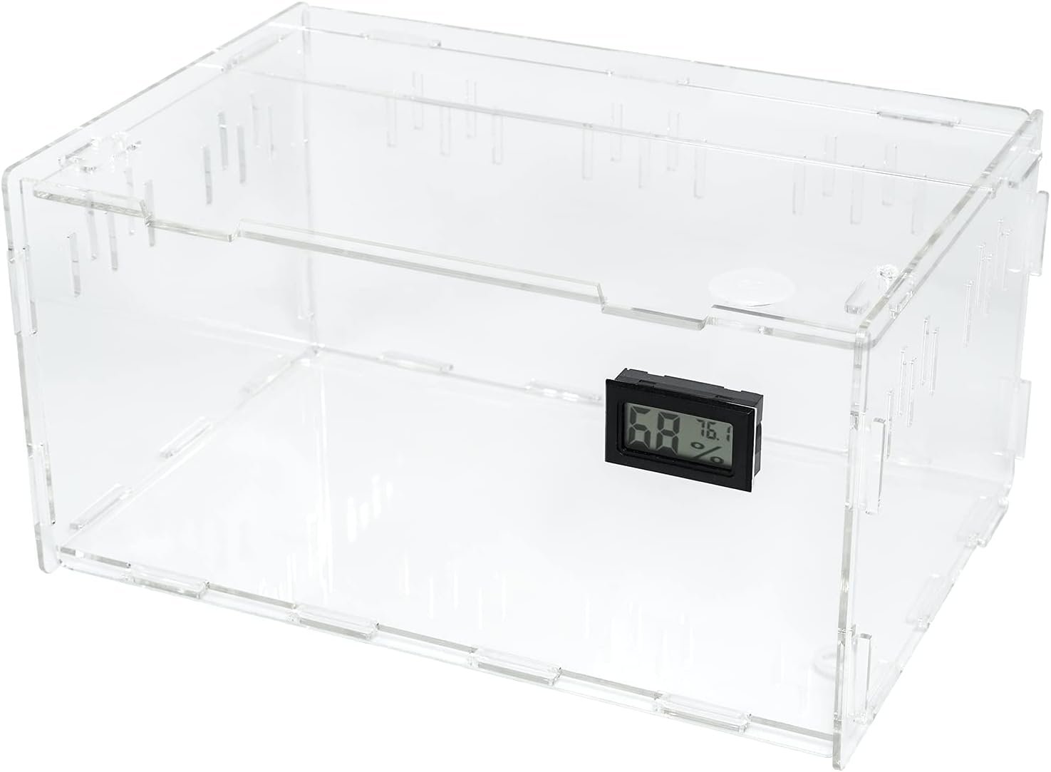BETAZOOER Reptile Terrarium Breeding Tank Acrylic Reptile Feeding Box with Temperature Hygrometer (15.3″x9.7″x7.6″)