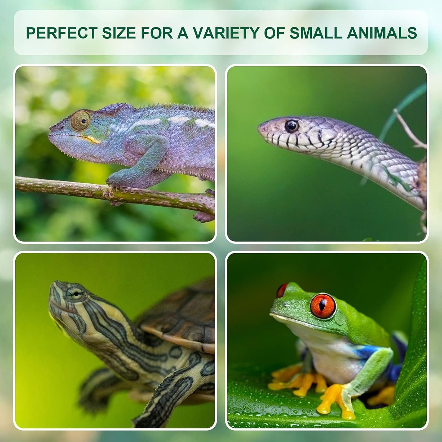 This reptile terrarium box is the perfect size for baby reptiles, spiders, tarantulas, and other small animals, measuring 15.3″x9.7″x7.6″ (37.5cmx24.5cmx19.4cm). The 360-degree full view design provides a visually completely transparent and clear environment, making it easy to observe and clean.