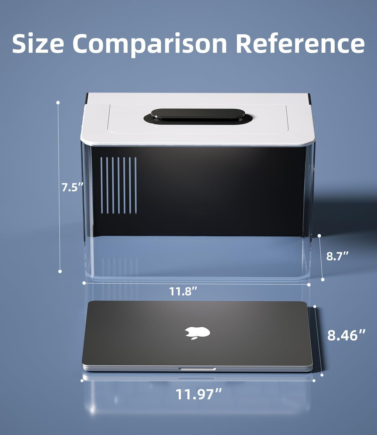 This 2.5 gallon fish tank is designed to provide a comfortable and healthy environment for your fish. With its space-efficient design and aesthetics, it is perfect for small spaces and can be a great addition to any home or office.