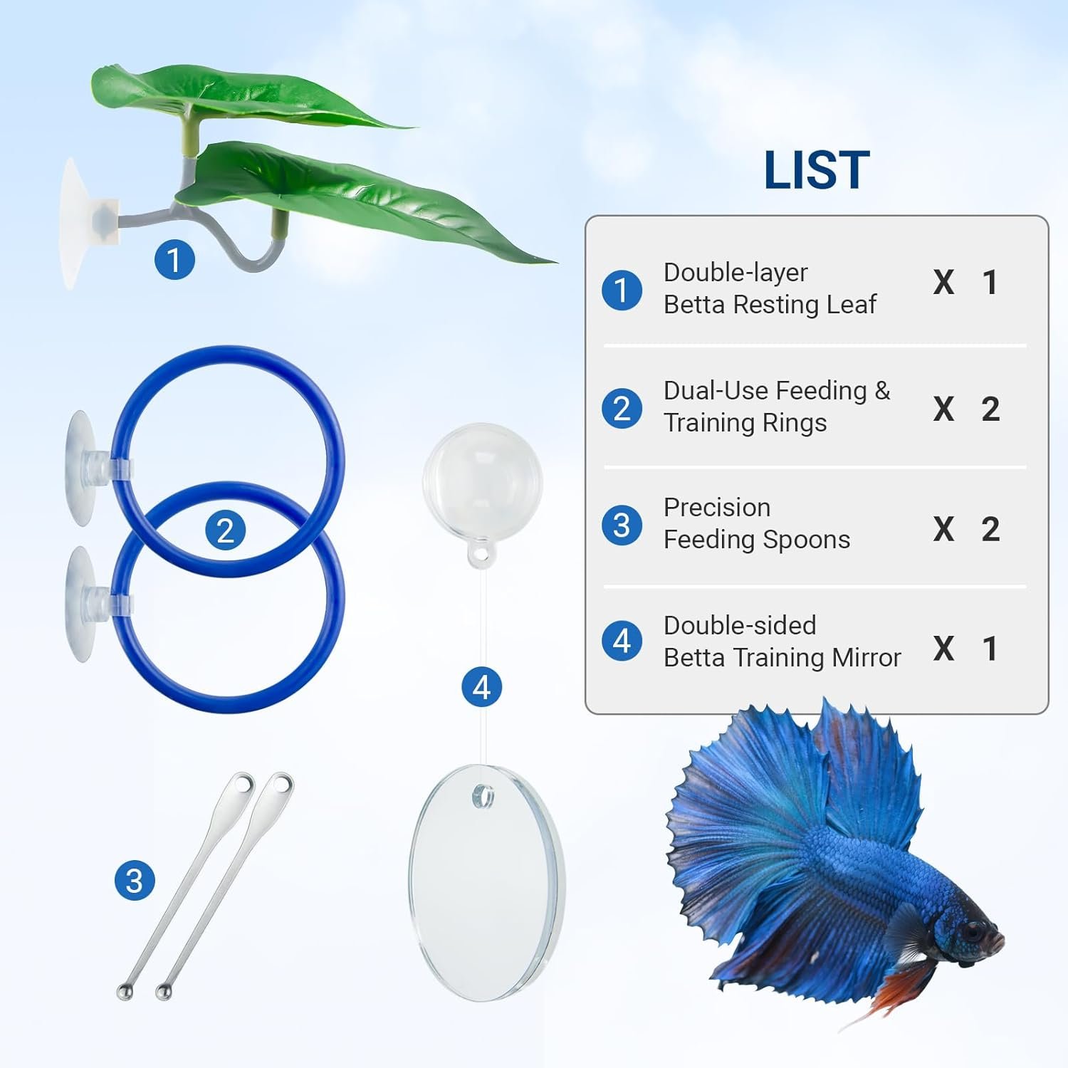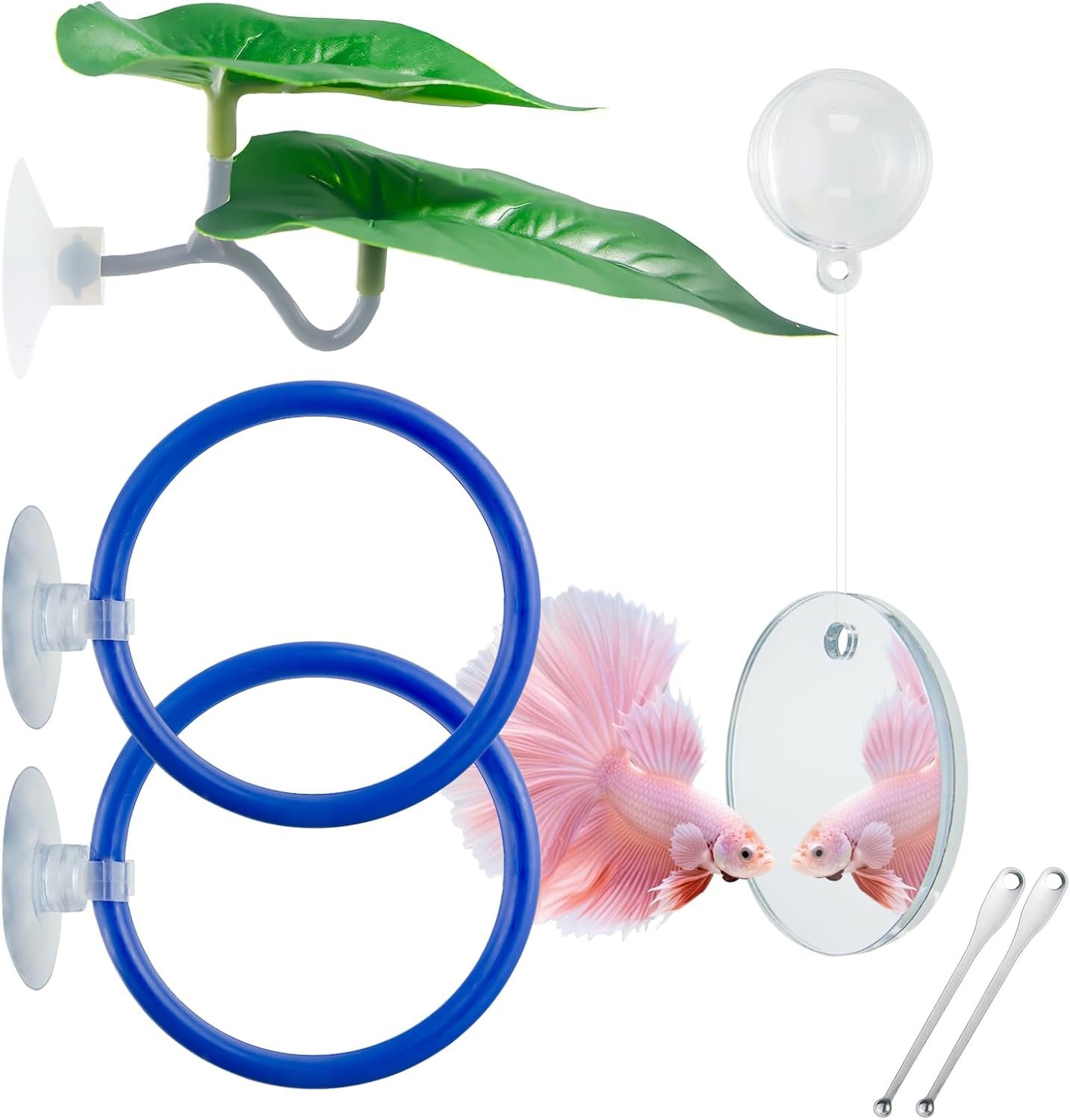Give your betta fish a healthier, more engaging aquarium life with our all-in-one enrichment kit. Designed by fish-keeping enthusiasts, this complete set combines essential tools for feeding, training, and rest – supporting natural behaviors while simplifying tank maintenance.