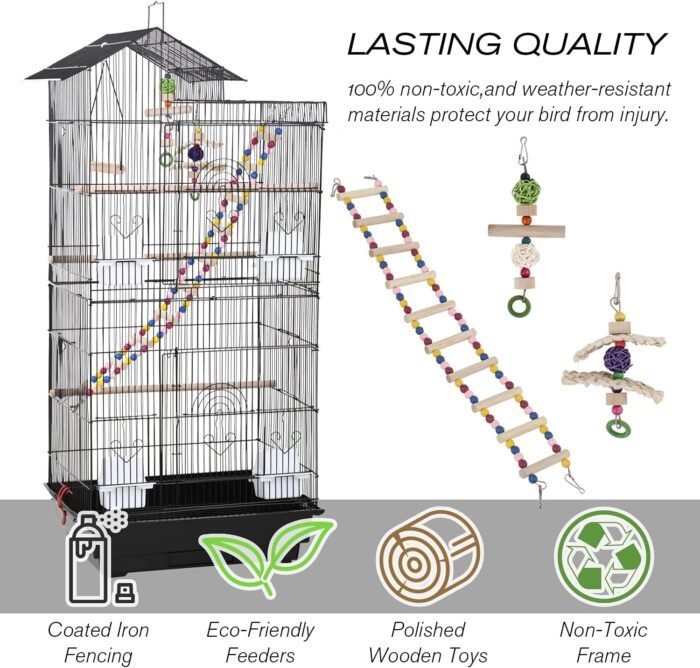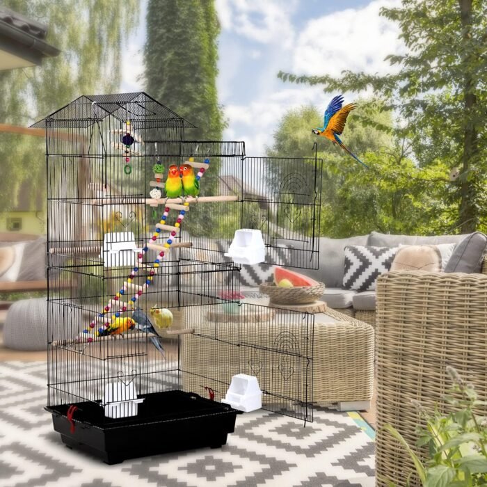 • Durable and Safe: The cage is made from high-quality materials, ensuring durability and safety for your birds.