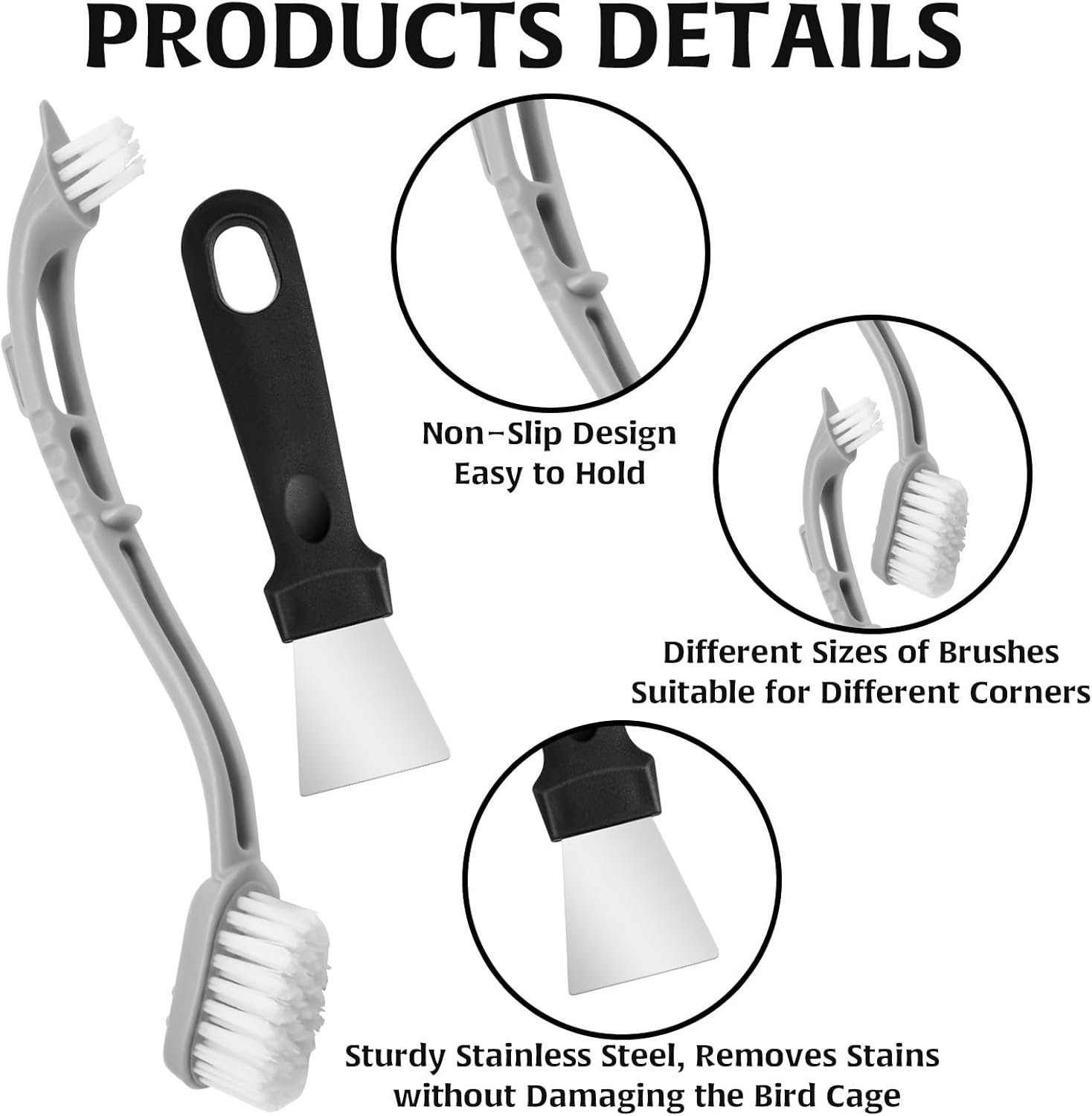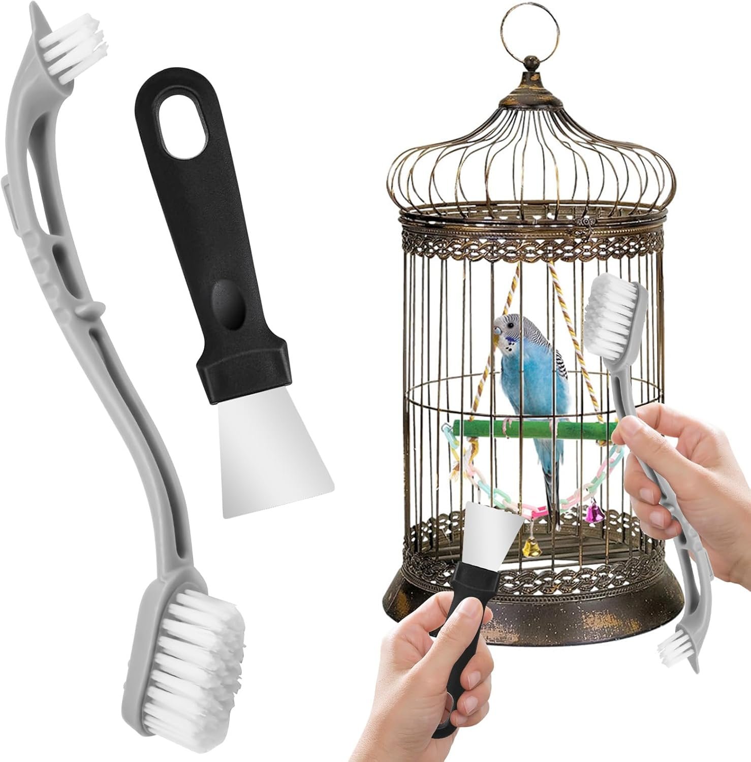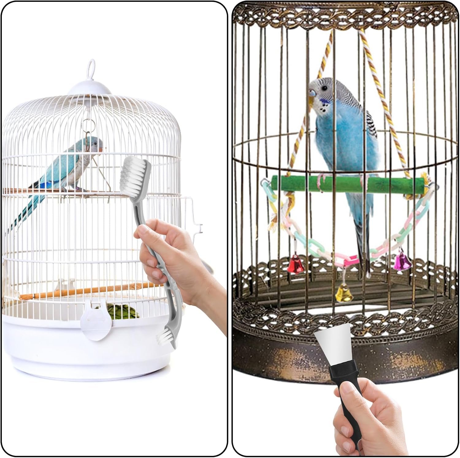 • Easy to Use: The bird cage cleaner is cleverly designed and finely crafted, with reverse-designed brush heads for easy cleaning.